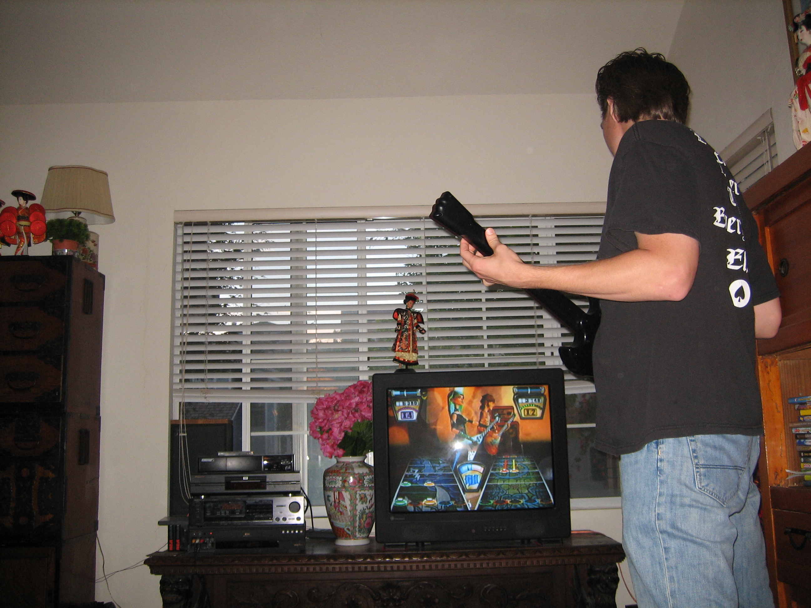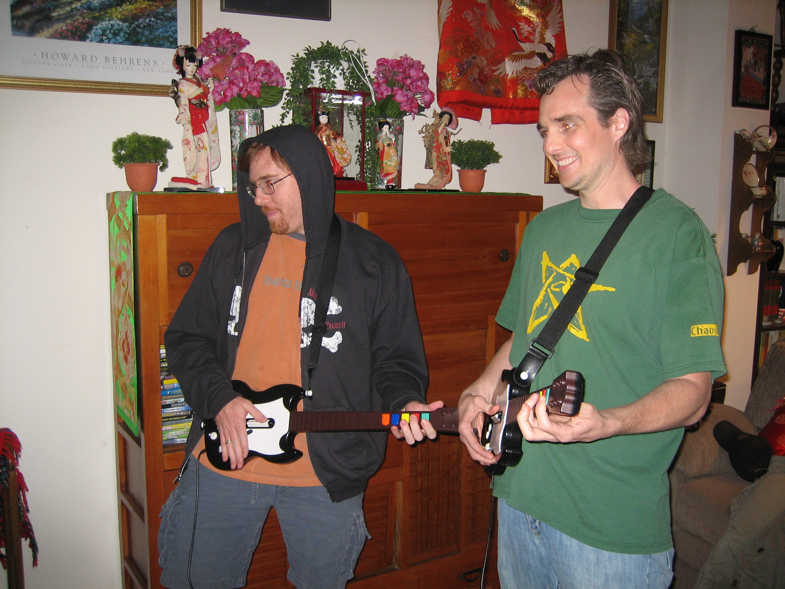 Aaron and Brian rockin' out to Guitar Hero!